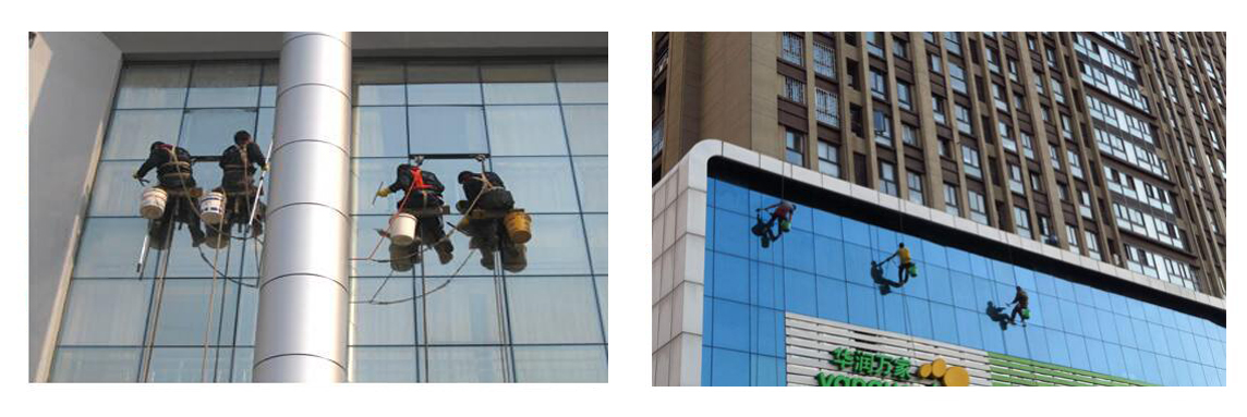 高處或難以到達位置的污漬,清潔人員會利用專業(yè)的登高設(shè)備或工具進行處理。對于一些粘性較強的附著